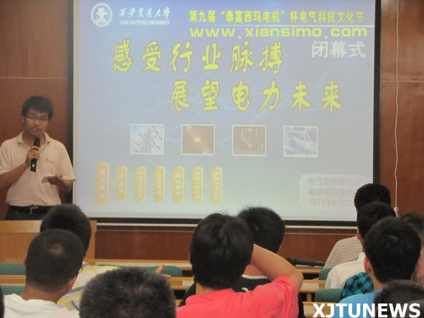 西瑪電機資訊:5月23日晚,由西安泰富西瑪電機有限公司贊助支持,西安交通大學(xué)電氣工程學(xué)院主辦,南洋書院團工委學(xué)生會、電氣學(xué)院研究生分會協(xié)辦的第九屆“泰富西瑪電機”杯電氣科技文化節(jié)電氣新銳人物評選活動總決賽在東一330教室舉行。經(jīng)過激烈角逐,電氣碩091班的宋曉源摘得“電氣新銳人物”的桂冠。